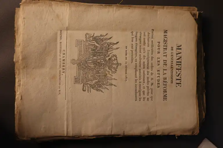 SAVOIE : - Raccolta delle leggi per ordine di materie delle leggi editi manifesti , pulicati sino agli 8 dicembre 1798 della real casa di Savoja - Vol undecimo - Torino, 1833 - In folio, broché (défauts) - Raccolta delle leggi per ordine di materie delle leggi editi manifesti , pulicati sino agli 8 dicembre 1798 della real casa di Savoja - Vol decimoterzo - Torino, 1835 - In folio, broché (défauts) - Ensemble d'environ 14 lettres patente format in 4°, 1827, 1821, 1823, 1832, 1817, 1822, 1826 - Chambre des députés des états sardes - Session parlementaire 1850-1851 - Fascicule in 8°, broché