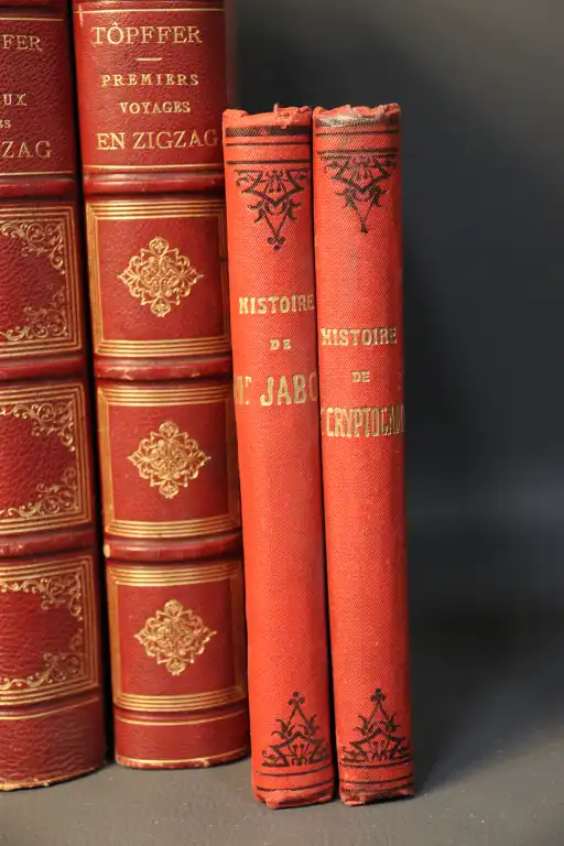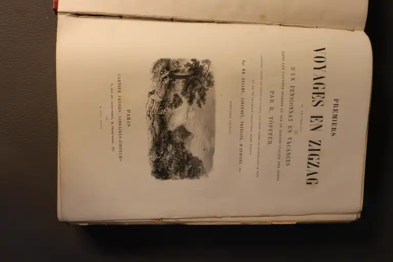 - Nouveaux voyages en Zigzag à la grande Chartreuse, autour du Mont Blanc - Troisième édition - Paris, Garnier, 1870 - Petit in 4°, demi-chagrin rouge, dos à nerfs orné, tr. dorées (petits défauts à la reliure) (piqures)