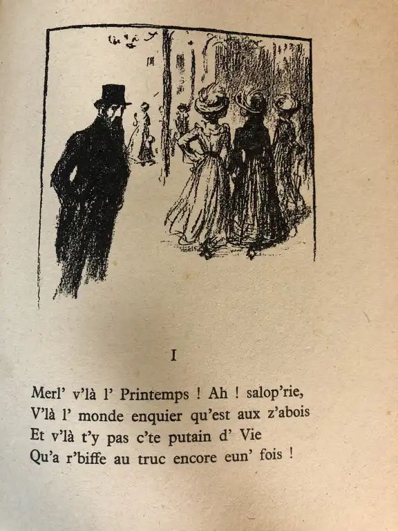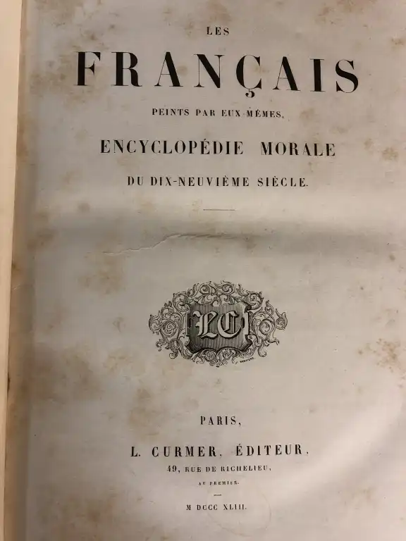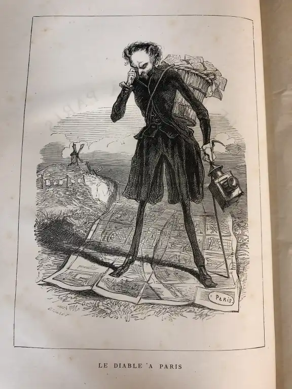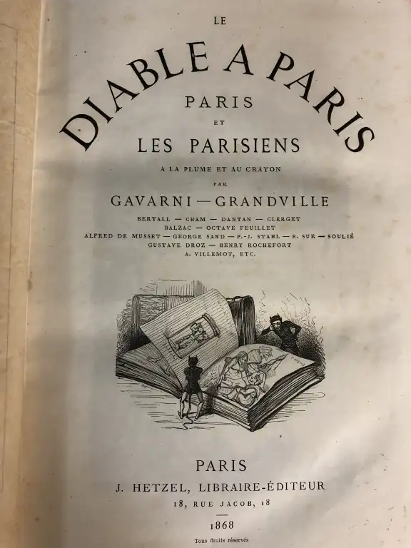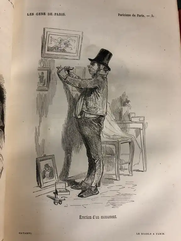 Ensemble de 7 livres illustrés: - Le diable à Paris - Paris et parisiens à la plume et au crayon par Gavarni - Granville, - Paris, Hetzel, 1868-69 - 4 vol. reliés en 2 tomes, in 4°, demi-chagrin rouge, dos à nerfs orné, tr. mouchetées (petits défauts dt piqures, frottis, ...) - Les français peints par eux-mêmes - Encyclopédie morale du dix-neuvième siècle - Paris, Curmer, 1863 - Gd in 8°, demi-basane verte, dos lisse orné de guirlande (défauts dt trace d'humidité, des pages roussies, dos insolé) (le frontispice et la page de titre on été aquarellé par un amateur) 46 gravures HT - [Revue] RATICHON - La lanterne des curés - 1884 - du n°1 au n° 19, 22 à 52 du 18 janvier 1885 - In 12°, demi-basane verte, dos lisse orné de filets dorés (frottis, des piqures, une réparation au scotch) - Ecole centrale 1905 - Croquis d'amphi - In 8°, bradel percale noire, dos lisse, petits défauts, orné de 32 croquis - Le livre des têtes de bois - Paris, Charpentier, 1883 - In 8°, bradel demi-chagrin rouge, dos lisse orné, tête dorée (rousseurs, reliure pouss.) - Illustré de 15 eaux-fortes - Tirage à 500 ex. nté, un des 400 sur papier ordinaire - RICTUS (Jehan) - Les soliloques du pauvre - Desseins de Steinlen - Paris, Seghers, 1949 - In 8°, broché