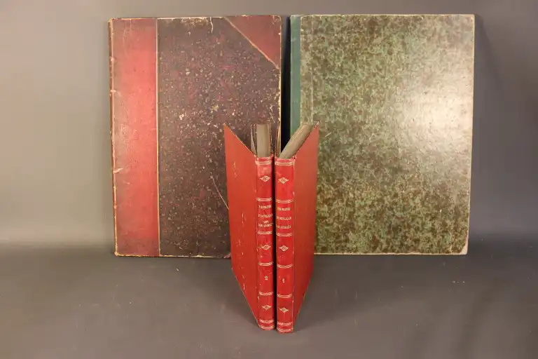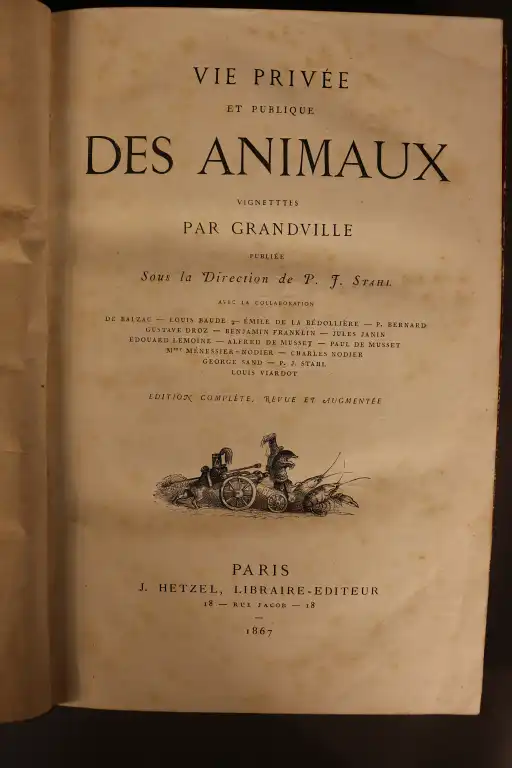 - COLLECTIF sous la direction de STHAL - Vie privée et publique des animaux - VIgnettes par Grandville - Edition complète, revue et augmentée - Paris, Hetzel, 1867 - 2 vol. gd in 8°, demi-basane rouge, dos lisse orné de filets dorés (des frottis, rousseurs parfois fortes) - COLLECTIF - LANCON - Les animaux chez eux - paris, librairie d'art, 1882 - In folio, demi-chagrin rouge à coins, dos à nerfs (reliure poussiéreuse, épidermée, coins émoussés, 1 page de garde volante, ...) (mouillures, rousseurs)