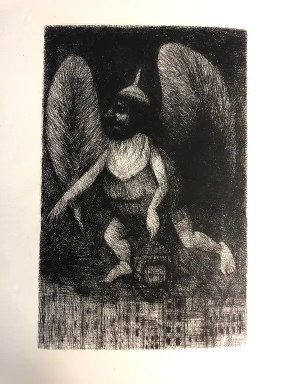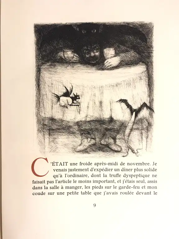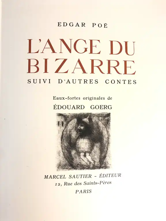 [GEORG Ed.] POE (Edgar Allan) - L'Ange du bizarre, suivi d'autres contes - Eaux-fortes originales de Edouard Goerg - Paris, Marcel Sautier, 1947 - In-4, en ff., couverture imprimée rempl., chemise, étui - (petits défauts dt accroc à la chemise) - Un des 200 ex. ntés sur chiffon d'Arches