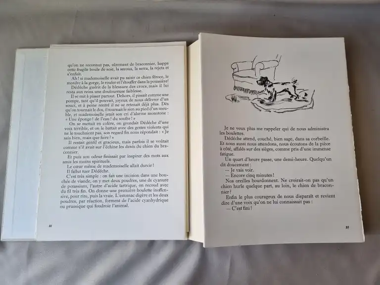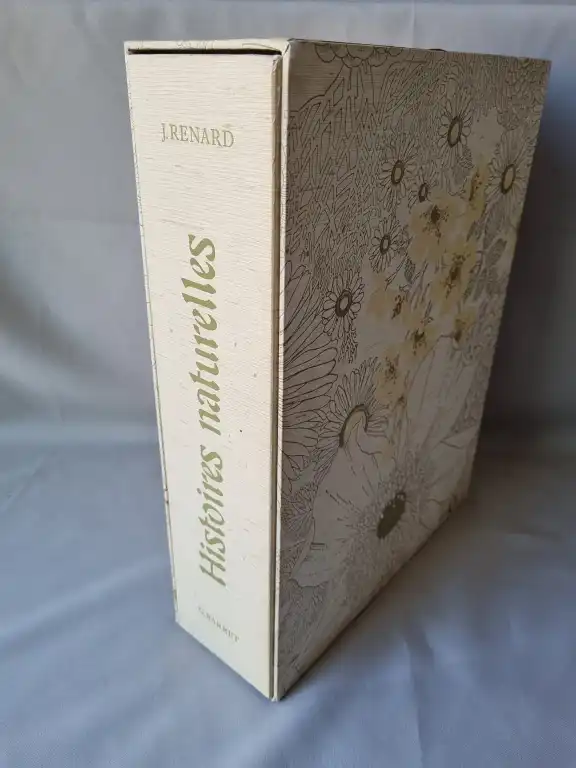 RENARD (Jules) - [BARRET G] - Histoires Naturelles. Accompagnées de Lithographies originales et de dessins de Gaston Barret - Paris, Vialetay, 1972. Grand in-4, en feuilles, couverture imprimée, illustrée et rempliée, chemise, étui illustré de l'éditeur. 16 lithographies originales hors-texte en couleurs dont 7 à double-page et 43 dessins en noir - Un des 60 ex. ntés (n°40) sur Lana contenant un dessin original, une suite des planches en couleurs et une suite des dessins en noir - Page de justification signée par l'artiste - Il y a en plus sur la page de faux-titre un dessin à la mine de plomb avec envoi de l'artiste, le nom de la personne a été graté (petits manques de matière sans trou)