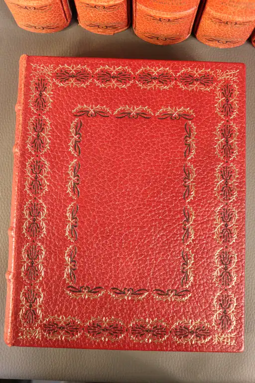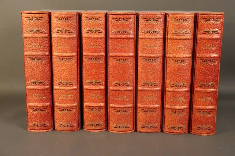 VERLAINE (Paul) - Poésies complètes. Illustrations de R. - W. Thomas gravées par Raymond Jacquet - Paris, Editions d'Art Les Heures Claires,1968 - 7 vol. gd in 8°, simili-maroquin framboise, plats ornés, dos à nerfs, tête dorée, étui (dos insolé, frottis) - Un des ex. ntés sur vélin chiffon de Rives