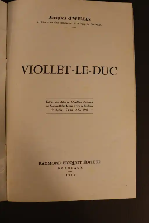 - WELLES (J.) - Viollet-Le-Duc - Bordeaux, Picquot, 1966 - Fascicule in 8°