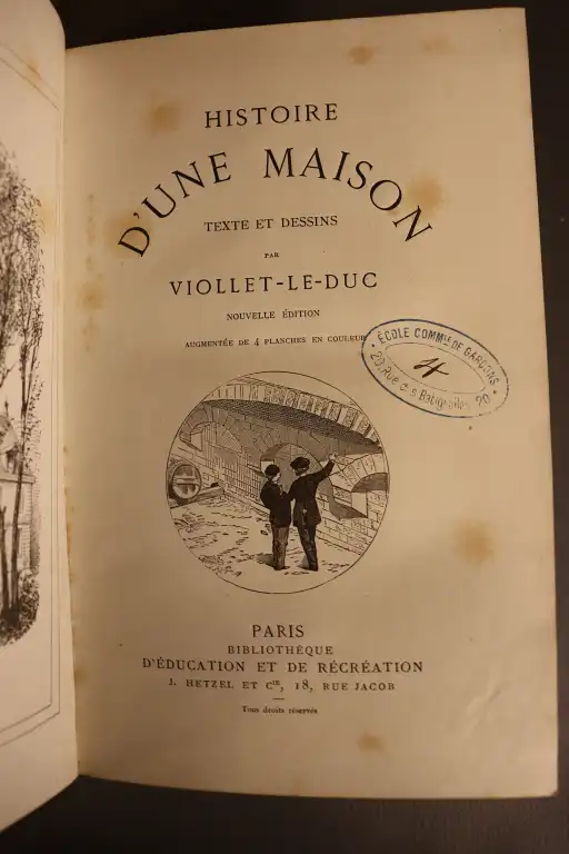 - VIOLLET-LE-DUC - Histoire d'une maison - Paris, Hezel, sd - Gd in 8°, toile noire amateur (défauts à la reliure, cachet humide, rousseurs)