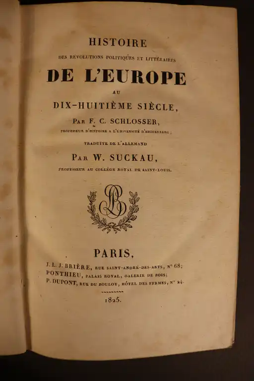 - SCHLOSSER - Histoire de l'Europe au dix-huitième siècle - Paris, Brière, 1825 - 2 vol. in 8°, chagrin, dos lisse orné, (petits défauts dt reliure insolée)