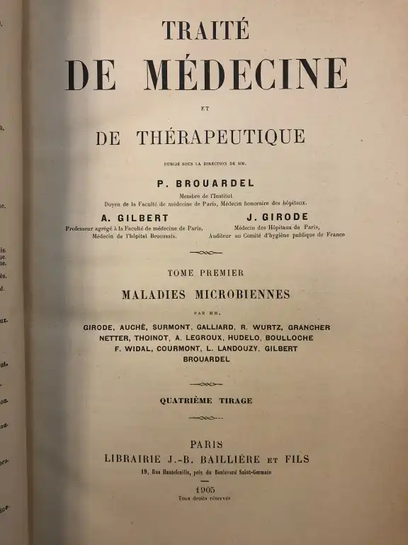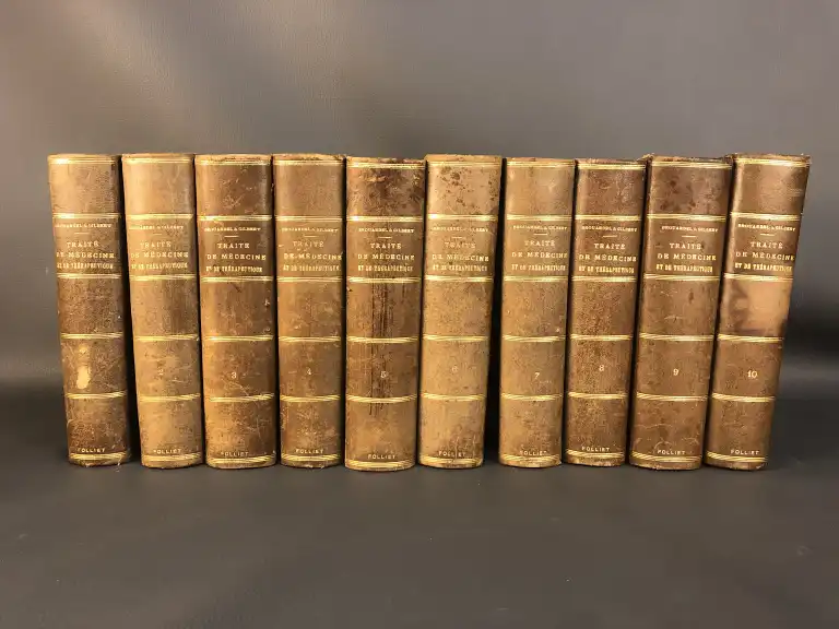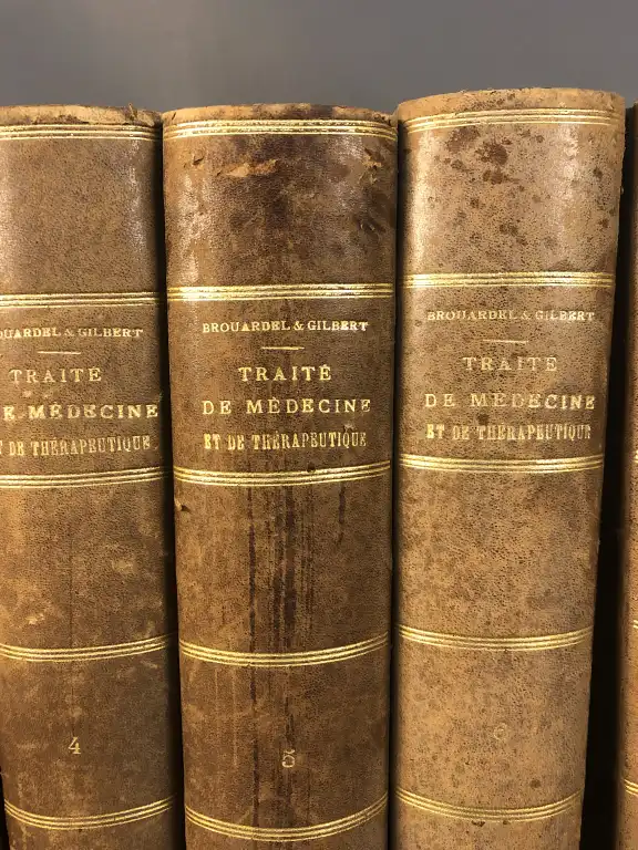 BROUARDEL, GILBERT, GIRODE - Traité de médecine et de thérapeuthqiue - 10 vol. in 8°, demi-basane brune, dos lisse orné de filets dorés, tr. Mouchetées (des petits défauts à la reliure)