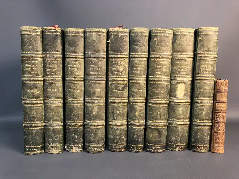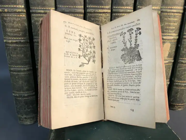 GUERIN (F.E.) - Dictionnaire pittoresque d'histoire naturelle et des phénomènes de la nature, , Paris, Bureau de souscription, 1833-1839 - 9 vol. in 4°, demi-basane verte frottée et épidermures, dos à nerfs (défauts dt rousseurs) - Illustrations HT - Texte sur 2 colonnes - HIstoire des plantes de l'Europe et des plus usitées, ... T2 - Lyon, Duplain, 1753 - In 12°, basane, dos à nerfs (défauts dt reliure usagée,..) T2 seul