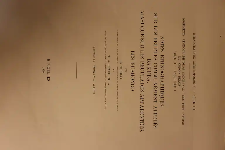 - TORDAY - JOYCE - Notes ethnographiques sur les peuples communément appelés Bakuba ainsi que sur les peuplades apparentées Les Bushongo - Aquarelles par Norman-H. Hardy - Bruxelle 1910 - In 4° en ff., 290 pp, 29 planches et 2 cartes dépliantes in fine, couverture imprimée (défauts) - Les marchands ambulants et les cris de la rue à Hanoï - Texte, musique, croquis et commentaires culinaires par les élèves de l'école des beaux arts de l'Indochine et F. de Fénis - Revue indochinoise, 1929 - In 4°, en ff., chemise rempliée illustrée (des défauts dt piqures, pouss., ...)