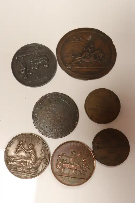 Lot de 6 médailles : - Médaille en cuivre. Dieu nous la donné 29 septembre 1820 par GAVRARD.
