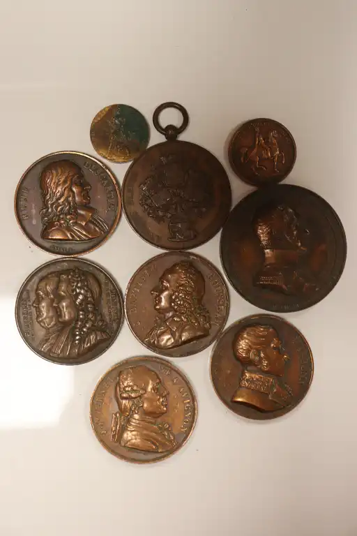 Lot de 8 médailles en cuivre : - Léopold Roi Constitutionnel, Belgique, 1831. D. : 5 cm