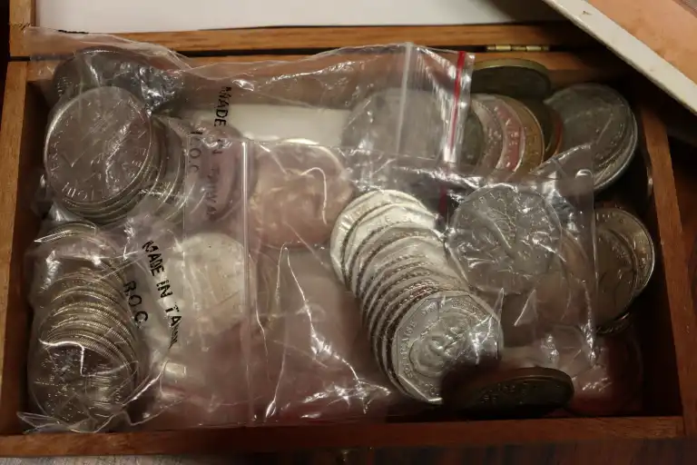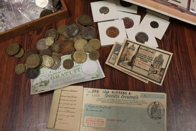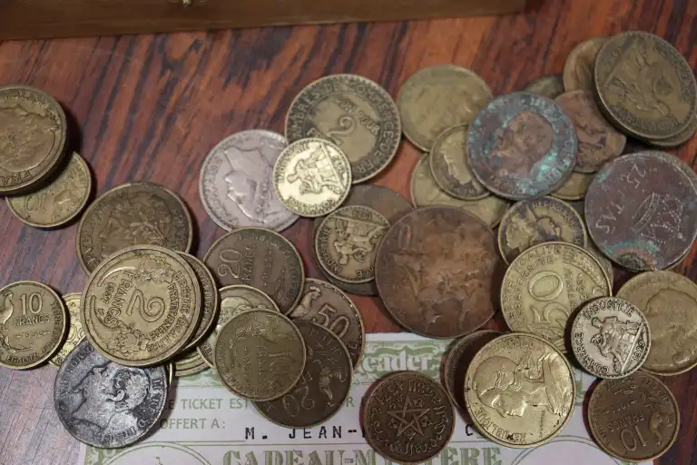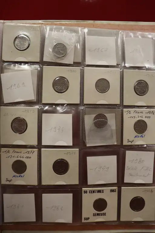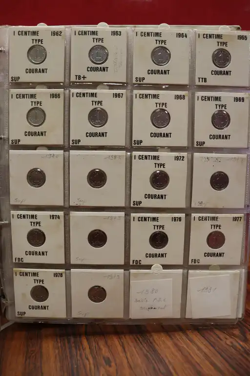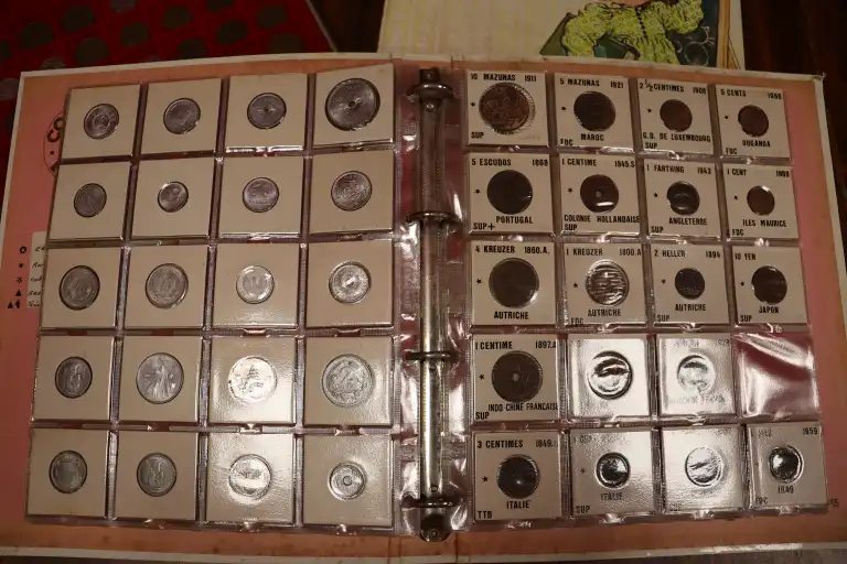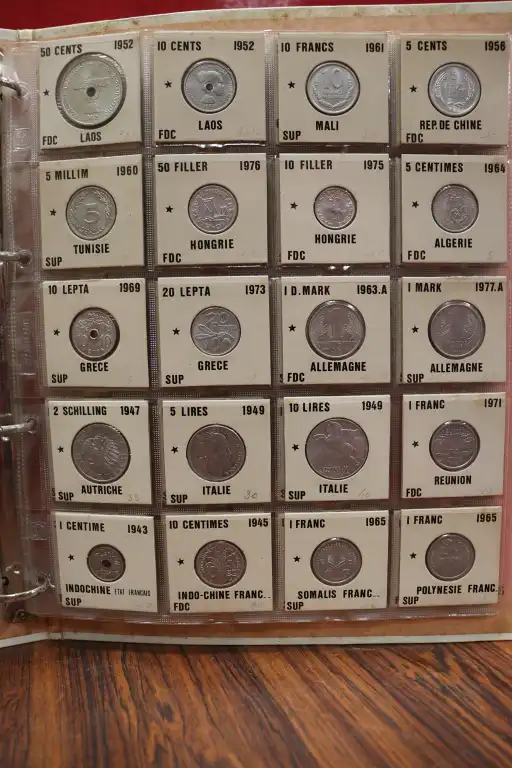 Collection de MONNAIES 2 albums où les pièces sont sélectionnées et identifiées + 2 boites a trier.