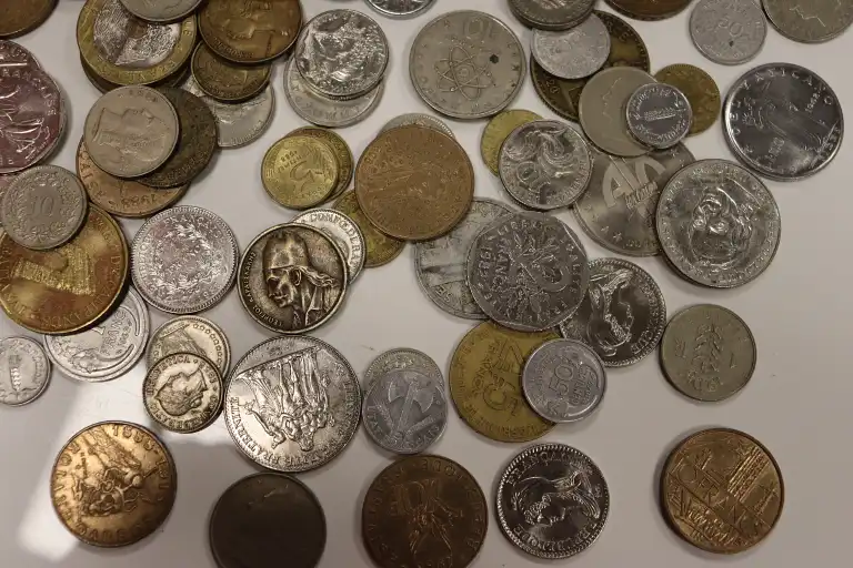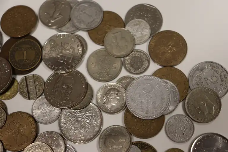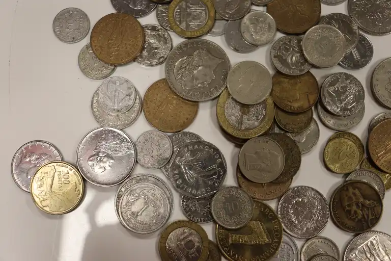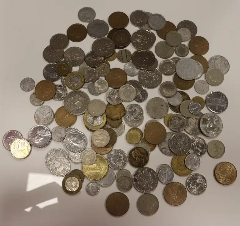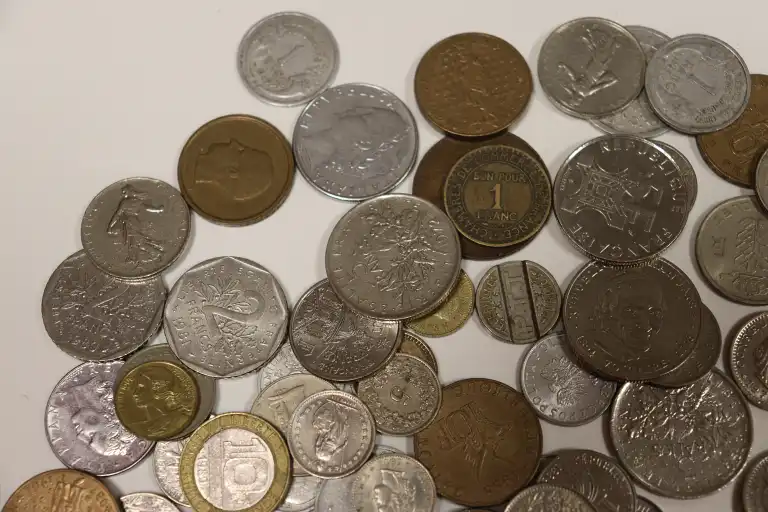 Lot de plus de 50 monnaies du monde dont Françaises et Suisses.