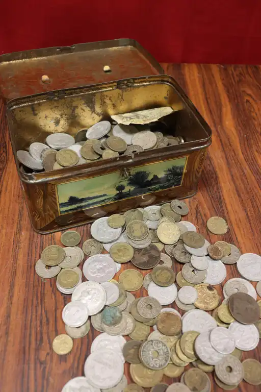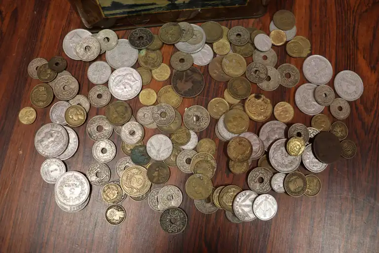 Une boîte de monnaies françaises comprenant beaucoup de francs