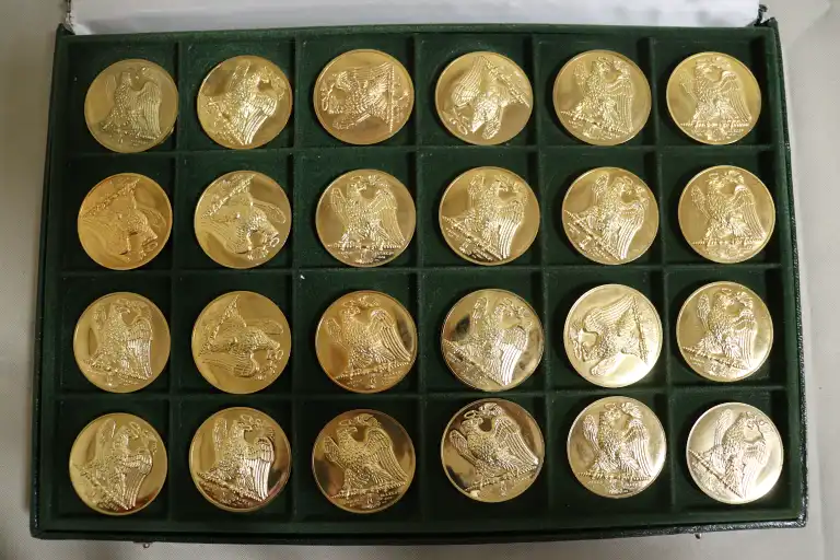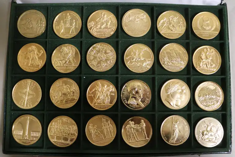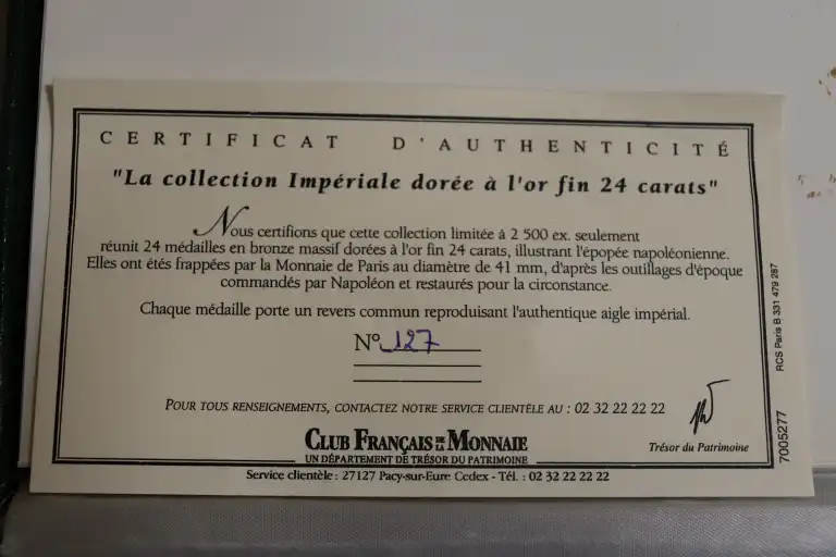 1 Coffret : La Collection Impériale - Coffret numéroté 127 sur 2500. 24 Medailles en bronze massif dorée à l'or fin. Poids moyen par médaille 50g et diamètre de 41mm