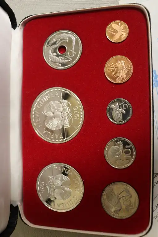 Papouasie Nouvelle Guinée Coffret FDC - 8 Monnaies dont le 5 Kinas et 10 Kinas en argent. 1976 avec certificat (Papua New Guinea Proof Set 1976)
