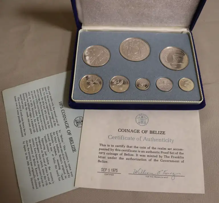Belize Coffret FDC - 8 Monnaies. 1975 avec certificat (Belize Proof Set 1975) - Quelques unes légerement frottées