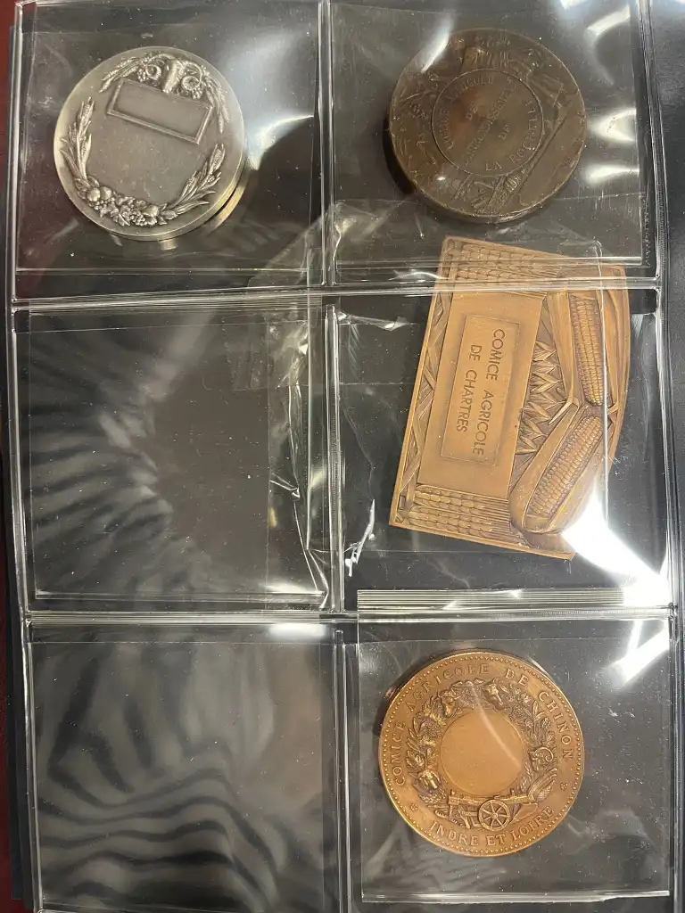 Album de 10 médailles agricoles diverses en bronze comprenant notamment : - Ministère de l'Agriculture, Chartres, 1885