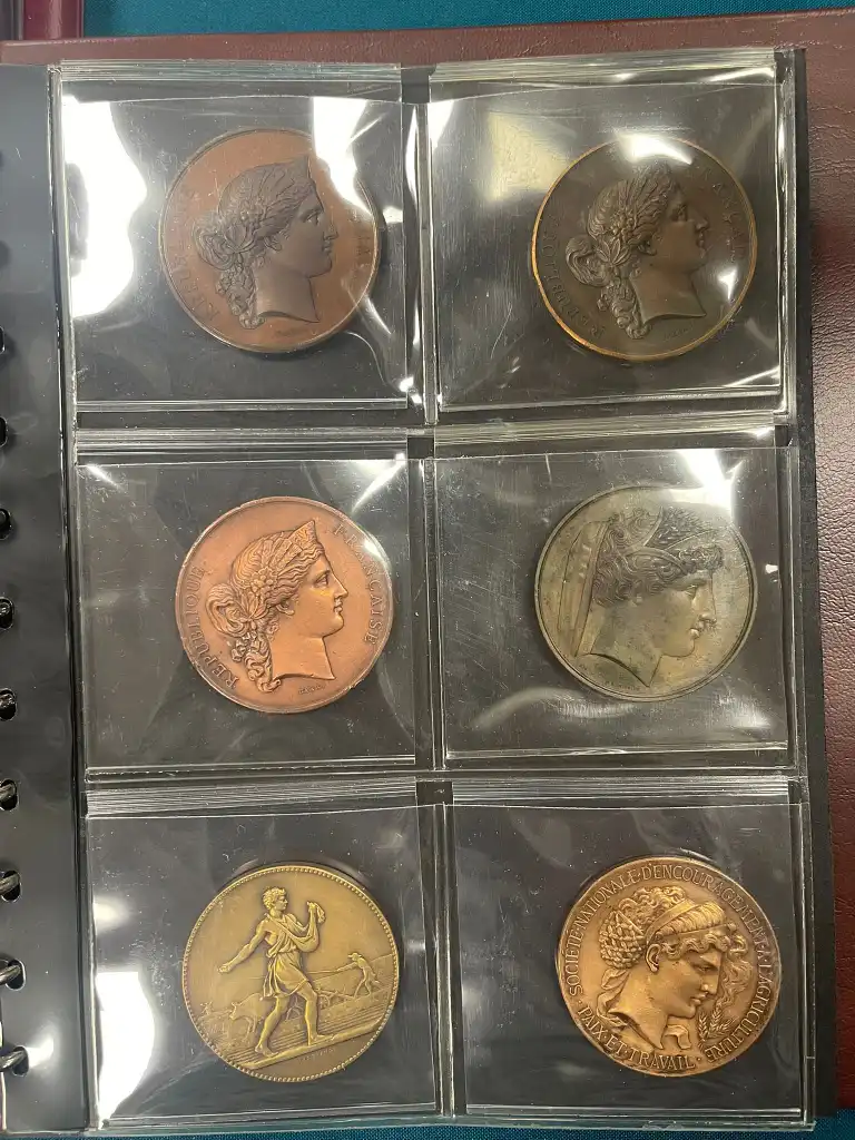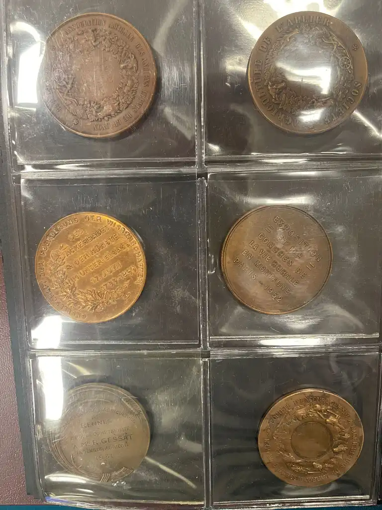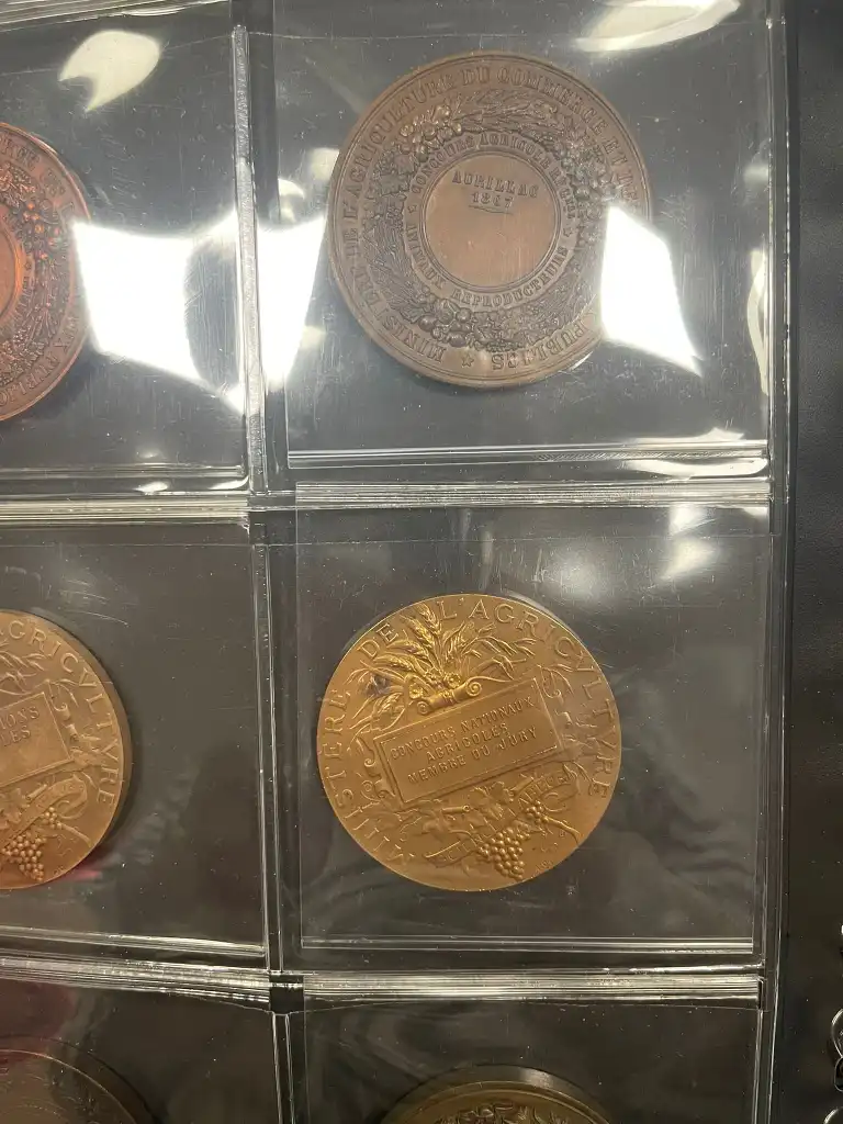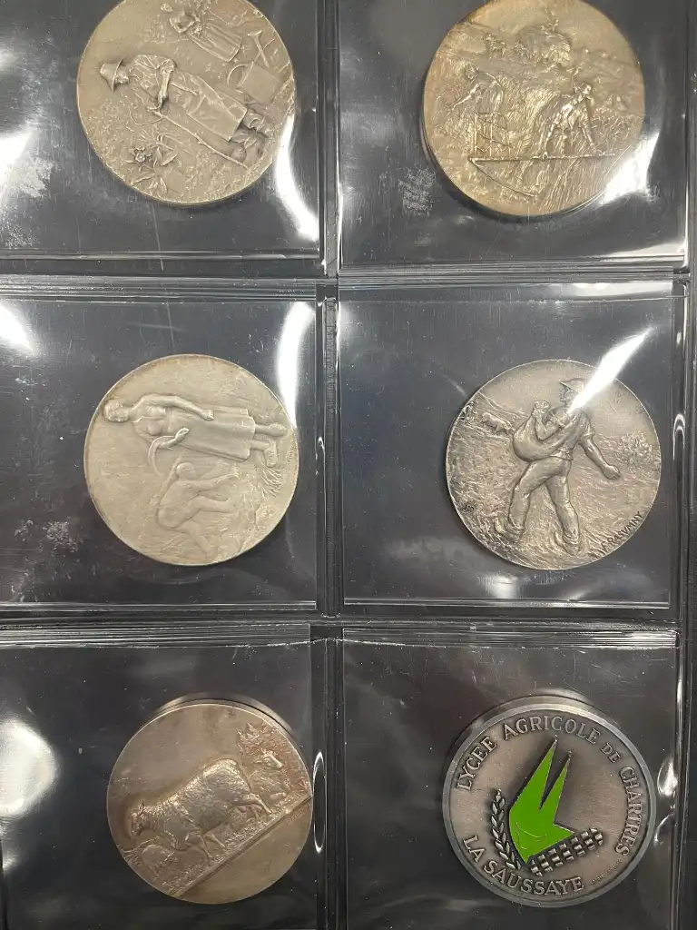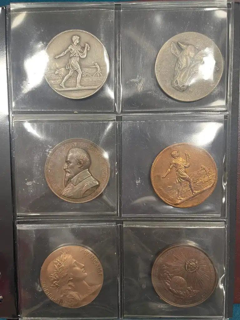 Album de 60 médailles agricoles en bronze (Diam. : 5 cm) comprenant notamment : - Société d'agriculture des Vélines