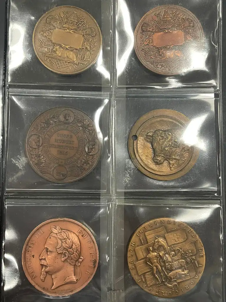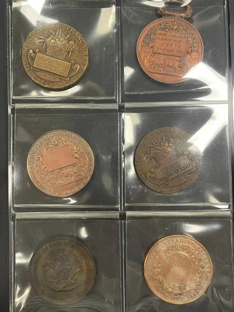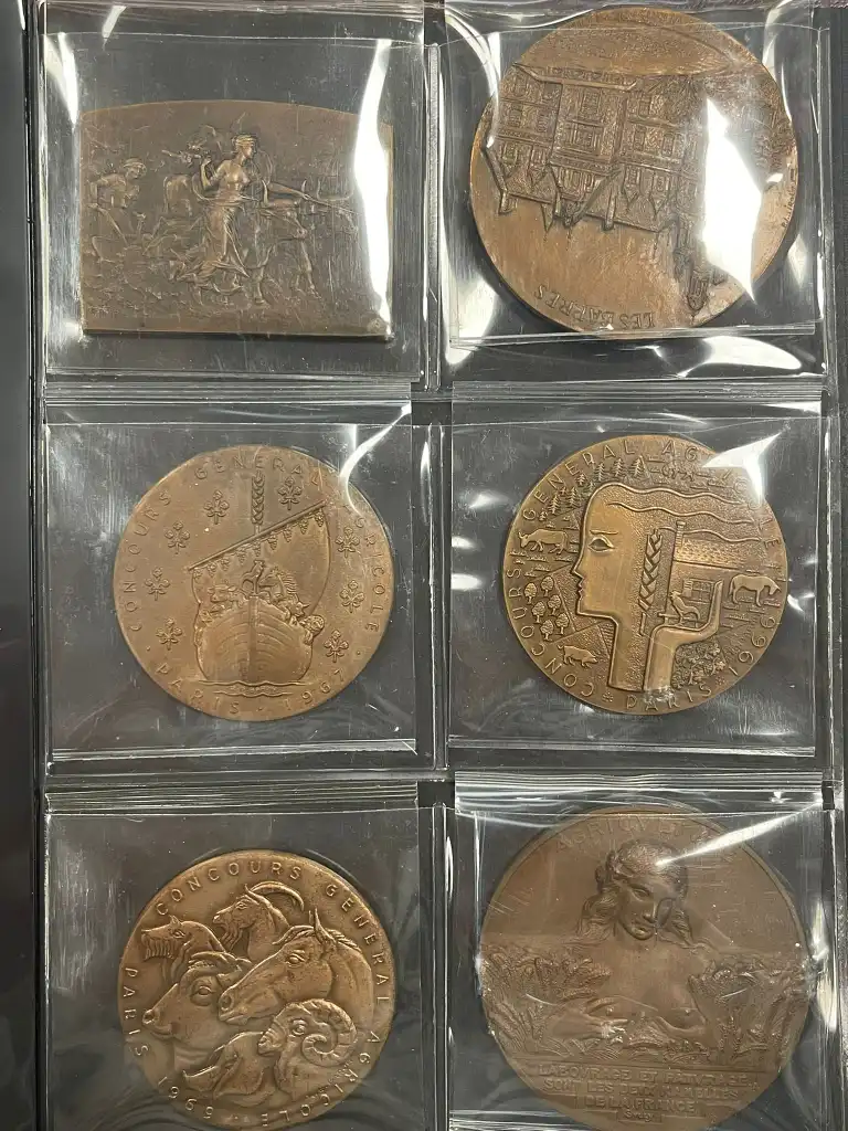 Album de 30 médailles notamment agricoles en bronze comprenant notamment : - Concours général agricole de Paris 1966, 1967, 1969, 1971