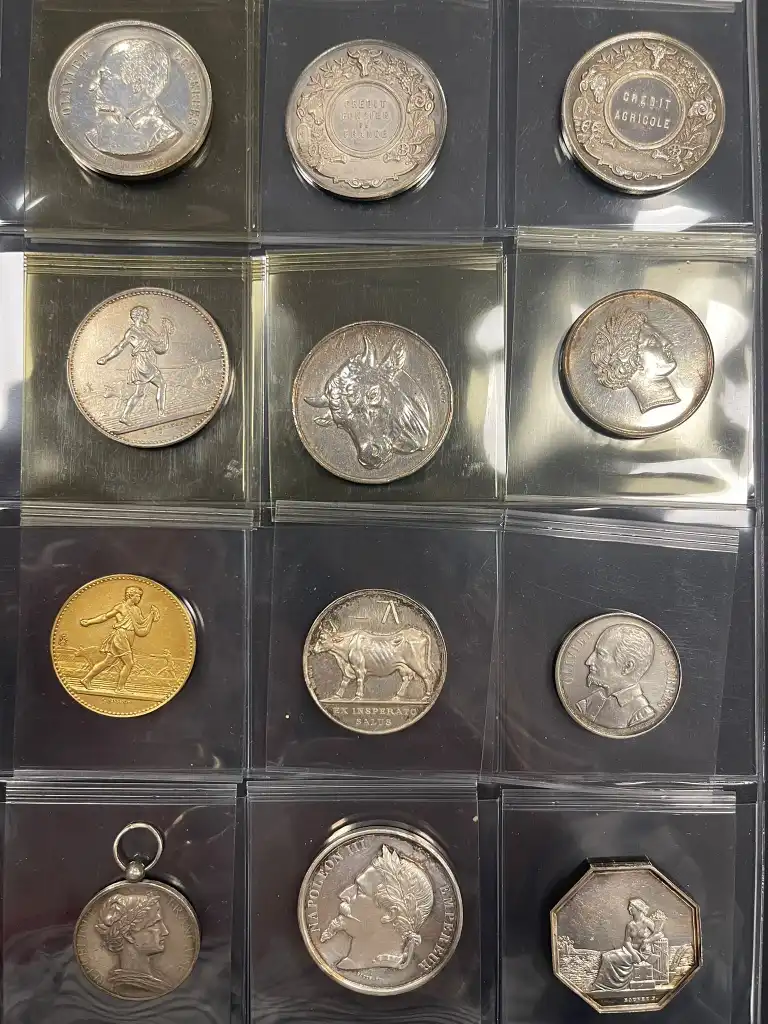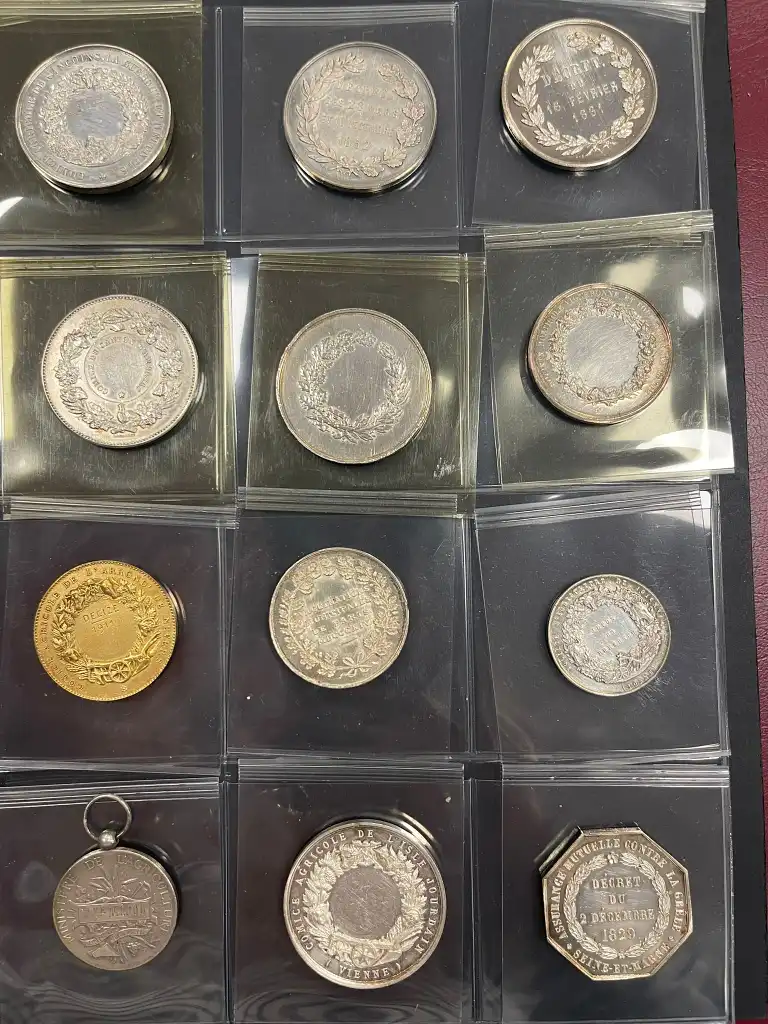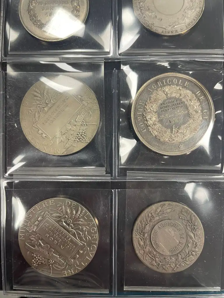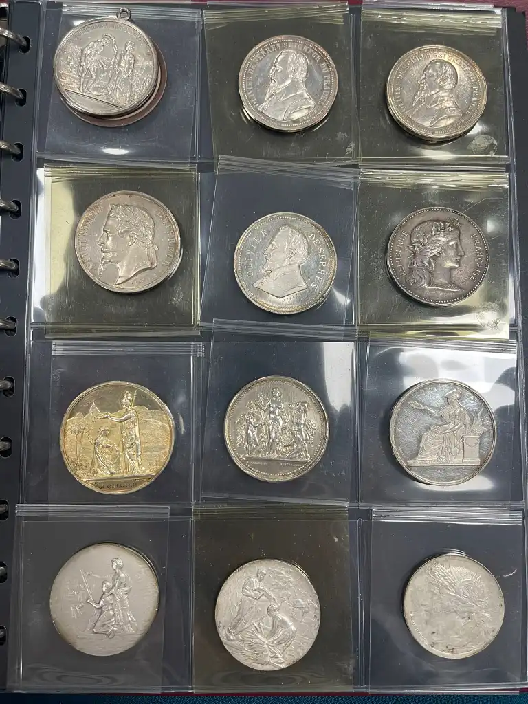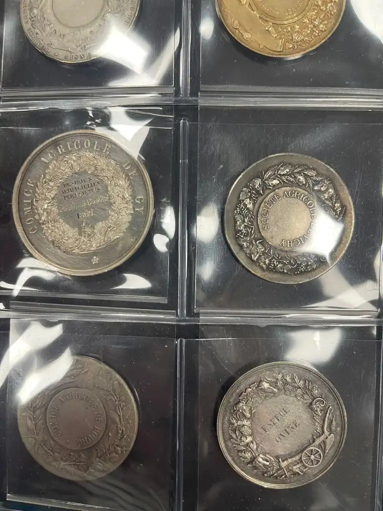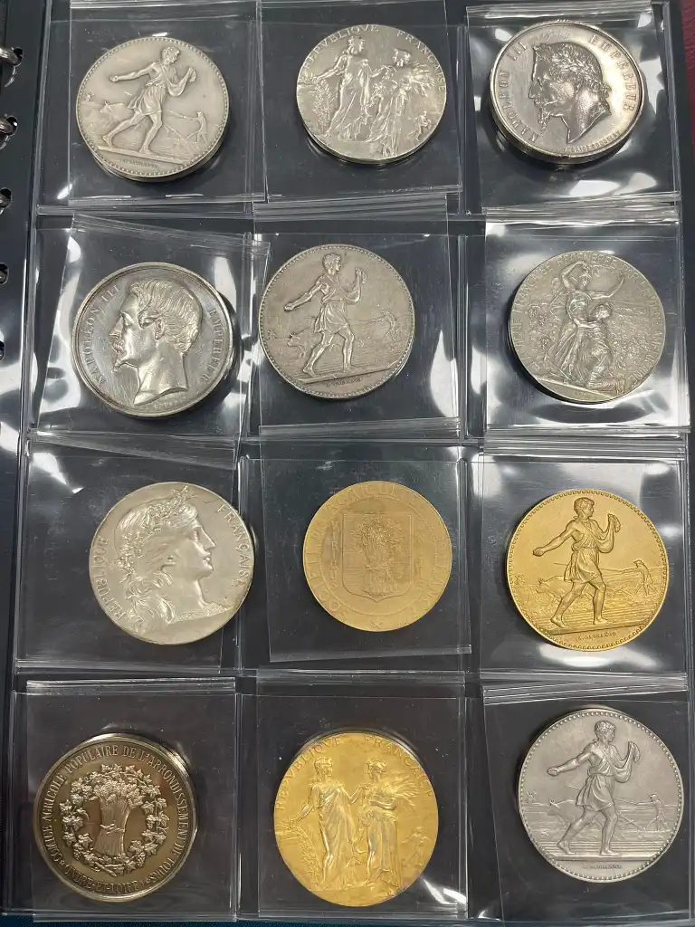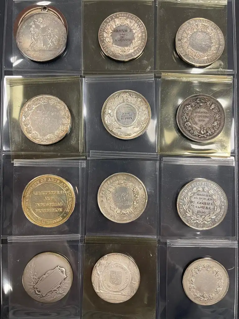 Album de 72 médailles en argent comprenant notamment : - Société d'agriculture de Melun de 1823