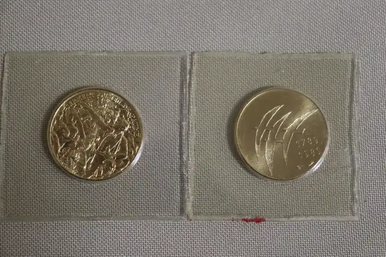 MONNAIE DE PARIS. Lot de 2 pièces d'or, logo du Bicentenaire de la Révolution Française par J.M FOLON 1789-1989 et fragment du tableau du Serment du Jeu de Paume par David.