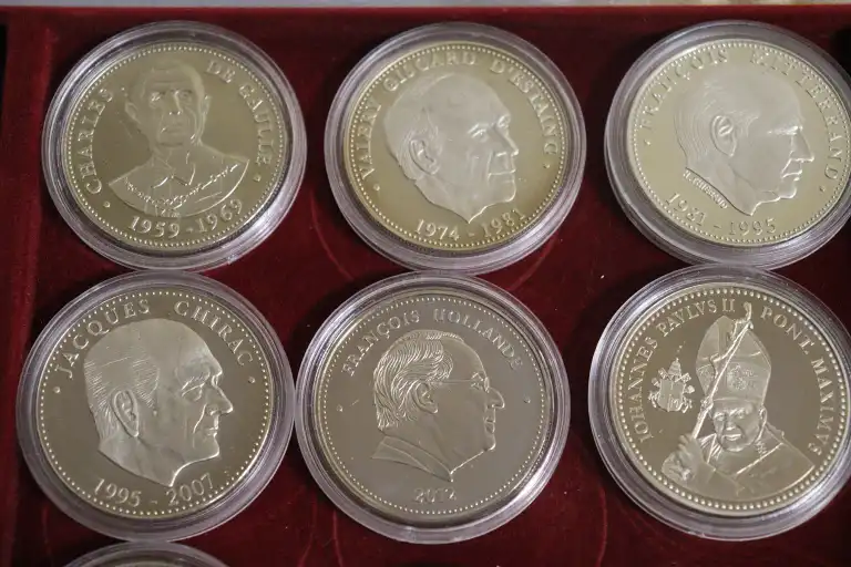 Coffret Les Présidents de la République du Trésor du Patrimoine (incomplet) comprenant : - 5 pièces argent de Présidents,