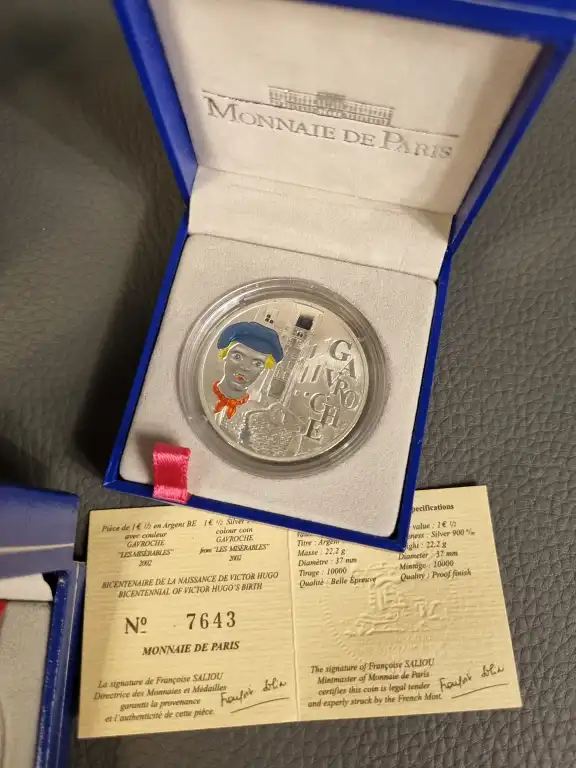 - Bicentenaire de la naissance de Victor Hugo. GAVROCHE, LES MISERABLES, n°7643 de 2002, pièce de 1€ 1/2 ;