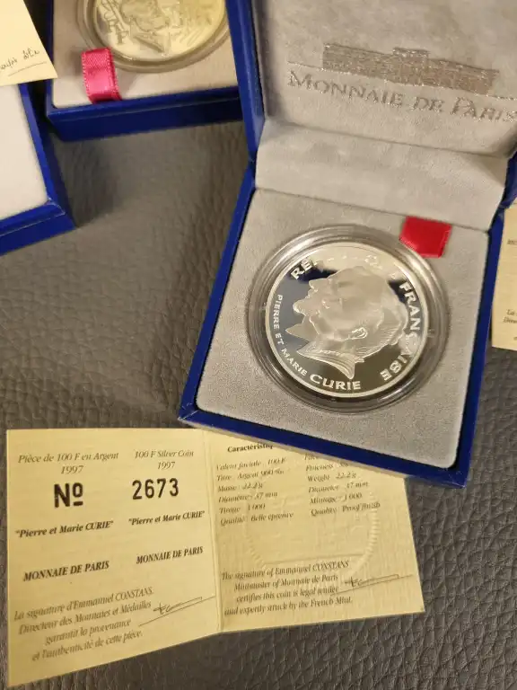 - PIERRE ET MARIE CURIE, n°2673 de 1997, pièce de 100 Francs ;