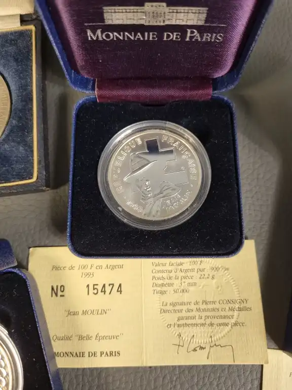 - JEAN MOULIN, n°15474 de 1993, pièce de 100 Francs
