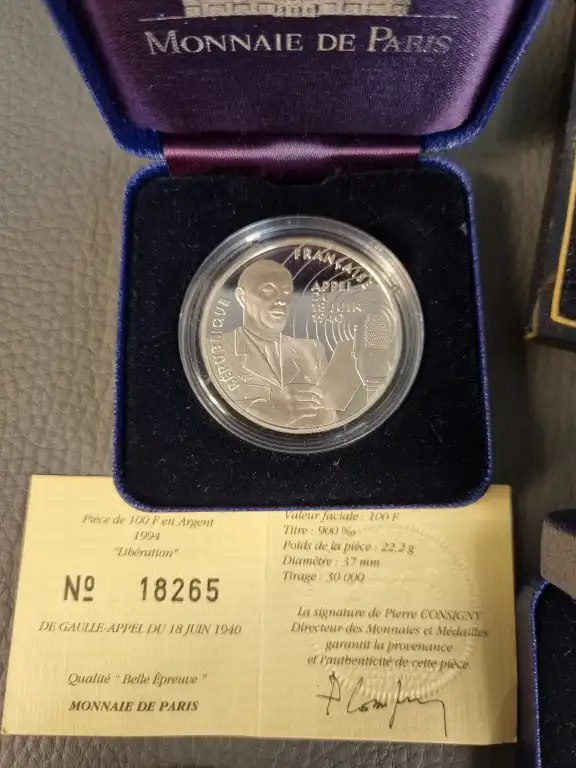 - Libération. DE GAULLE APPEL DU 18 JUIN 1940, n°18265 de 1994, pièce de 100 Francs