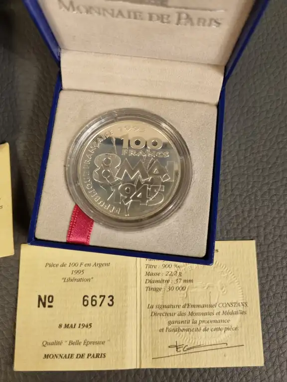 - Libération. 8 MAI 1945, n°6673 de 1995, pièce de 100 Francs