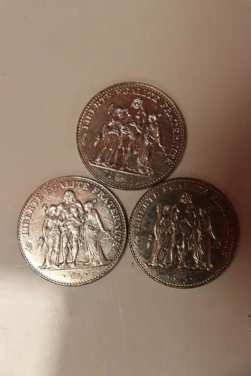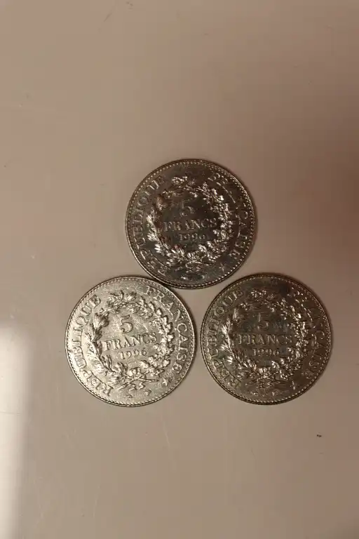 Lot de 3 pièces de 5 Francs Hercule en argent (1996). Poids : 30.18 gr