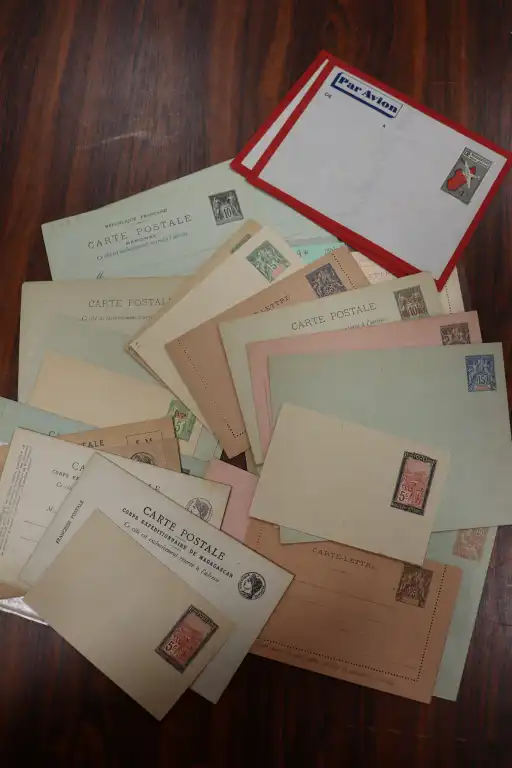 EX-COLONIES FRANCAISES Lot de + de 30 entiers différents ( cartes, cartes lettres, enveloppes ) dont 8x Chine, 2x Indochine, 7x Ste Marie de Madagascar, 13x Madagascar tous Neufs
