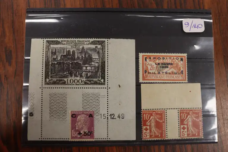 FRANCE N° 257A Exposition du Havre 1929 timbre neuf* avec trace de charnière ayant prélevé la gomme. Signé Calves et JF. Brun. Il est joint N° 147 Croix Rouge en paire interpanneau + N°251 Pasteur 1f50 +50c + PA 19 1000f PARIS Neuf