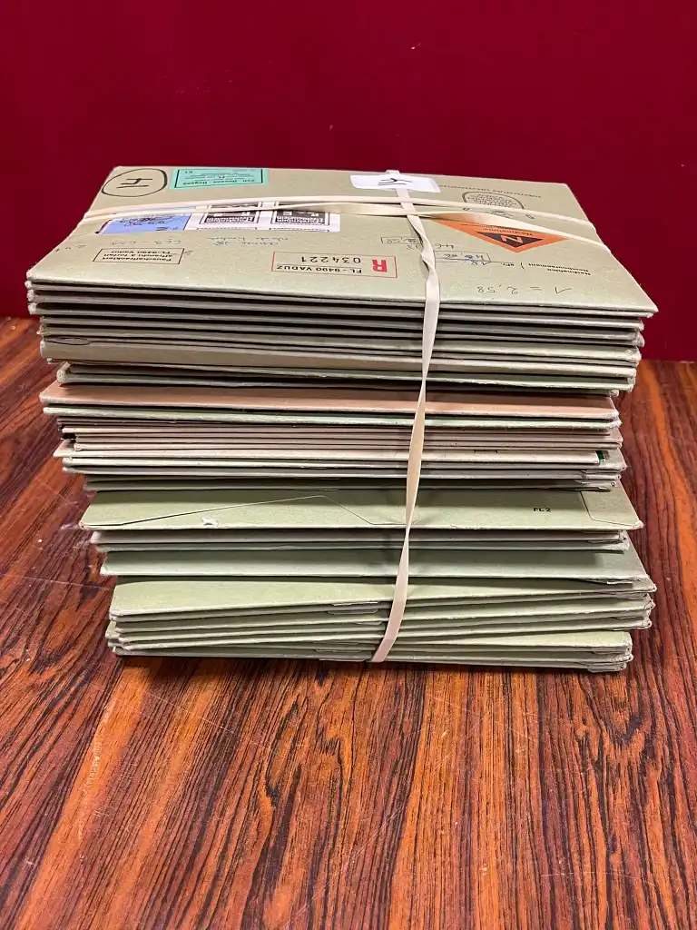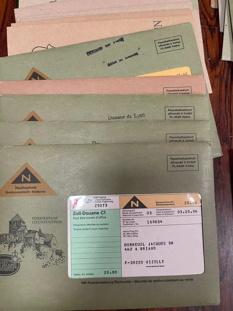 LIECHTENSTEIN Abonnement entre 1980 et 1993 dans une 40ène d’envois ( certains non ouverts ) contenant les timbres neufs ** , oblitérés et les 1ers Jours. Chaque envois coutaient entre 18SF et 30SF. Ensemble très propre.