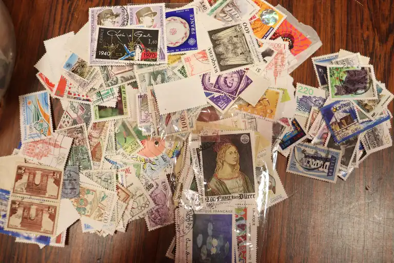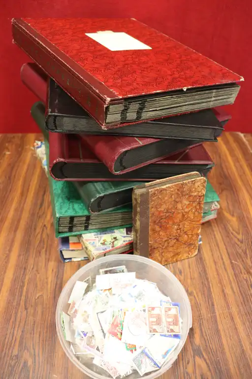 MONDE Un carton contenant 8 classeurs de timbres du monde B/TB